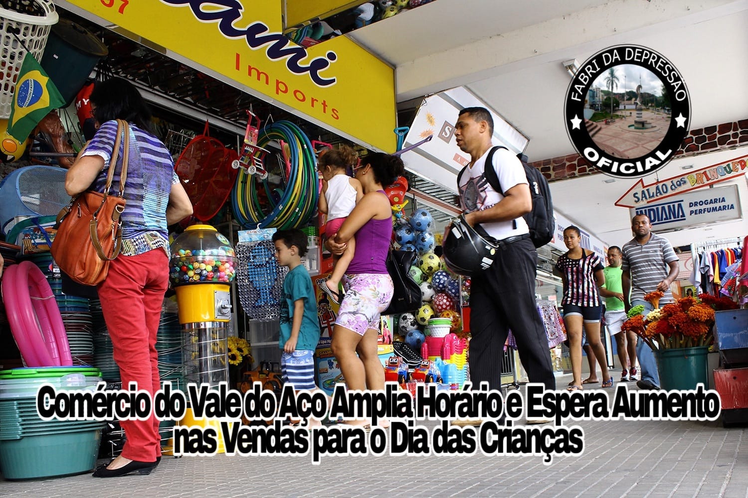O comércio das cidades de Coronel Fabriciano, Ipatinga e Timóteo está otimista em relação às vendas para o Dia das Crianças de 2024. Segundo uma pesquisa do Sindcomércio Vale do Aço, 65,5% dos lojistas acreditam que terão um desempenho superior ao de 2023. A expectativa de aumento nas vendas é impulsionada por promoções especiais, novos produtos e o horário de funcionamento ampliado nos dias 10 e 11 de outubro, das 9h às 20h.