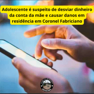 Adolescente é suspeito de desviar dinheiro da conta da mãe e causar danos em residência em Coronel Fabriciano 01/09/2025 Leia mais »