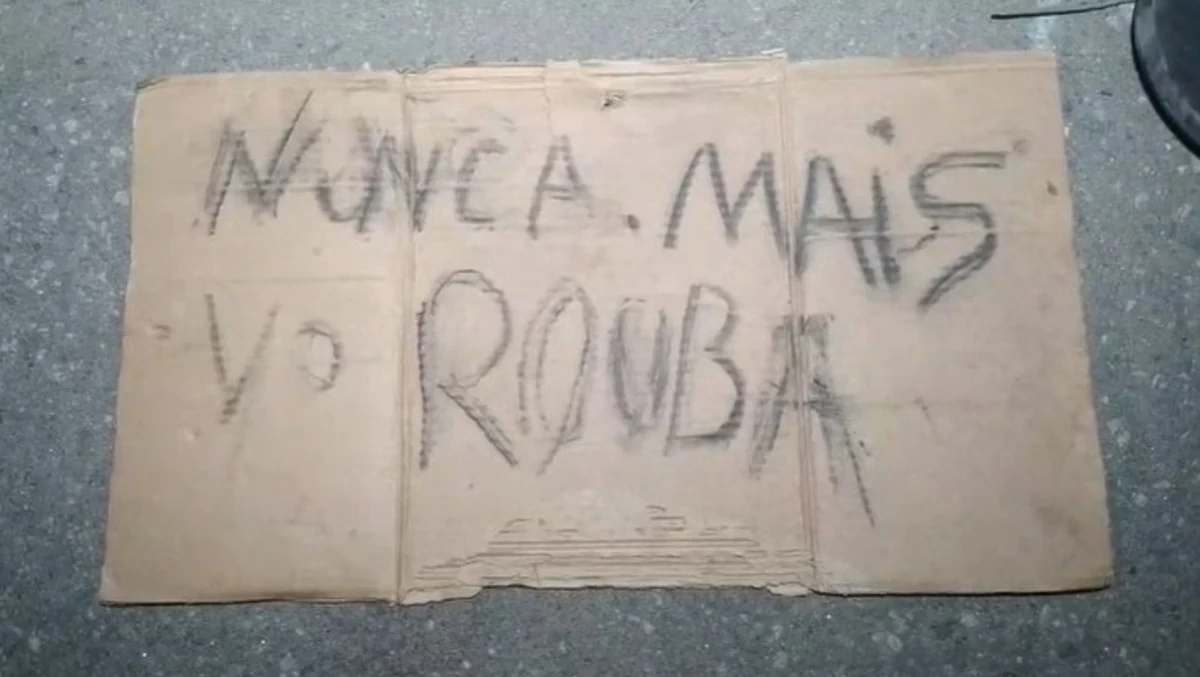 Amarrado e com um cartaz escrito ‘Nunca mais vou roubar’, um homem de 29 anos foi encontrado inconsciente na tarde desta quarta-feira (13), em Governador